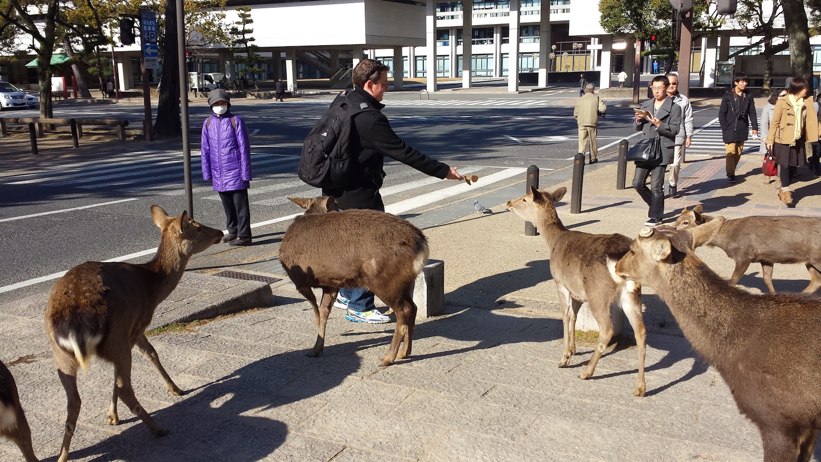 A not-wise deer trying to steal crackers from one of the vendors...just outside the shot is the woman holding her wooden deer-beating stick, distracted by a small child and his parent.